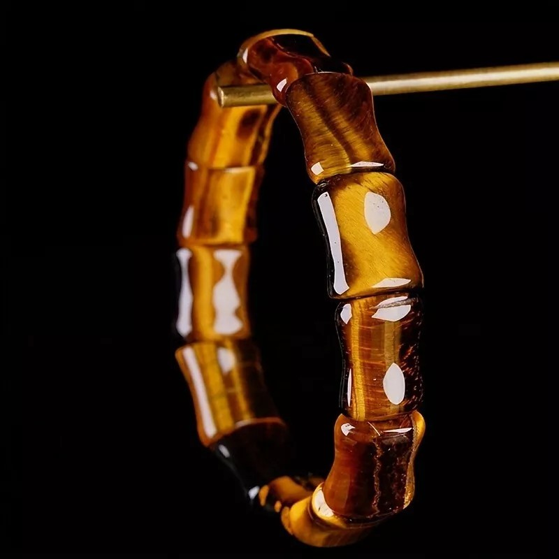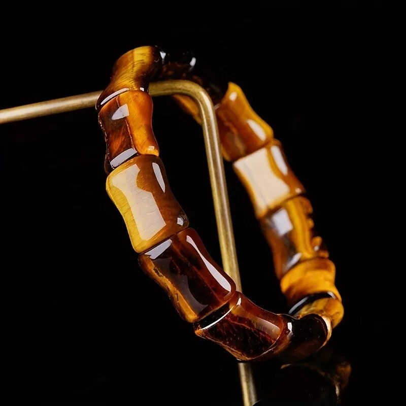 Natural Tiger's Eye Stone Bracelet Brown Gemstone Stretch Bracelet Handmade