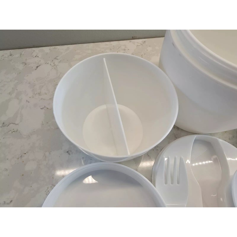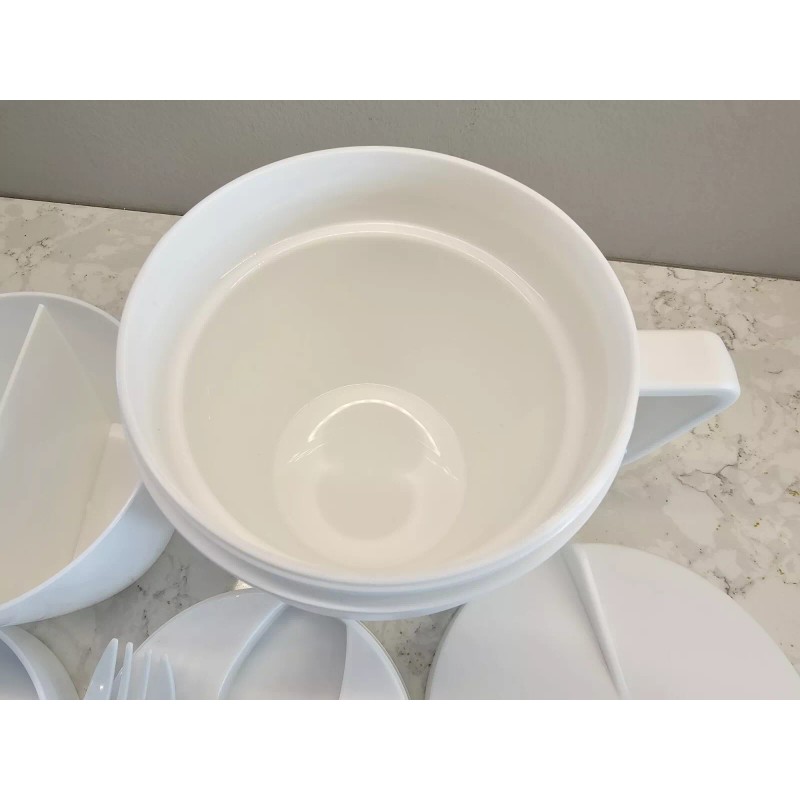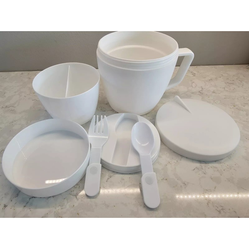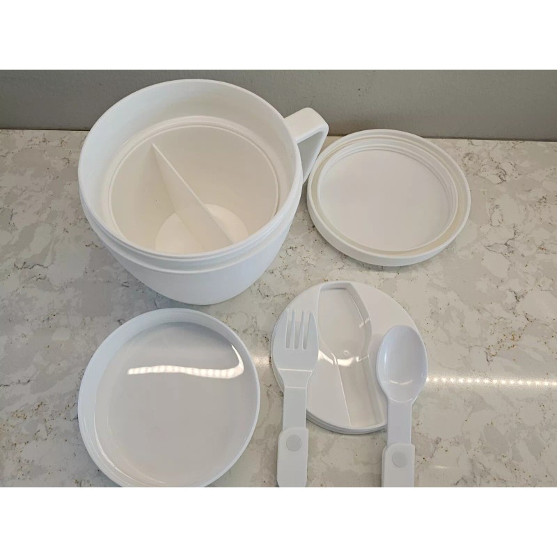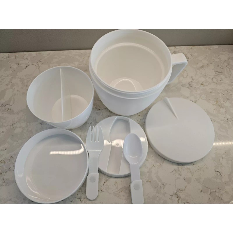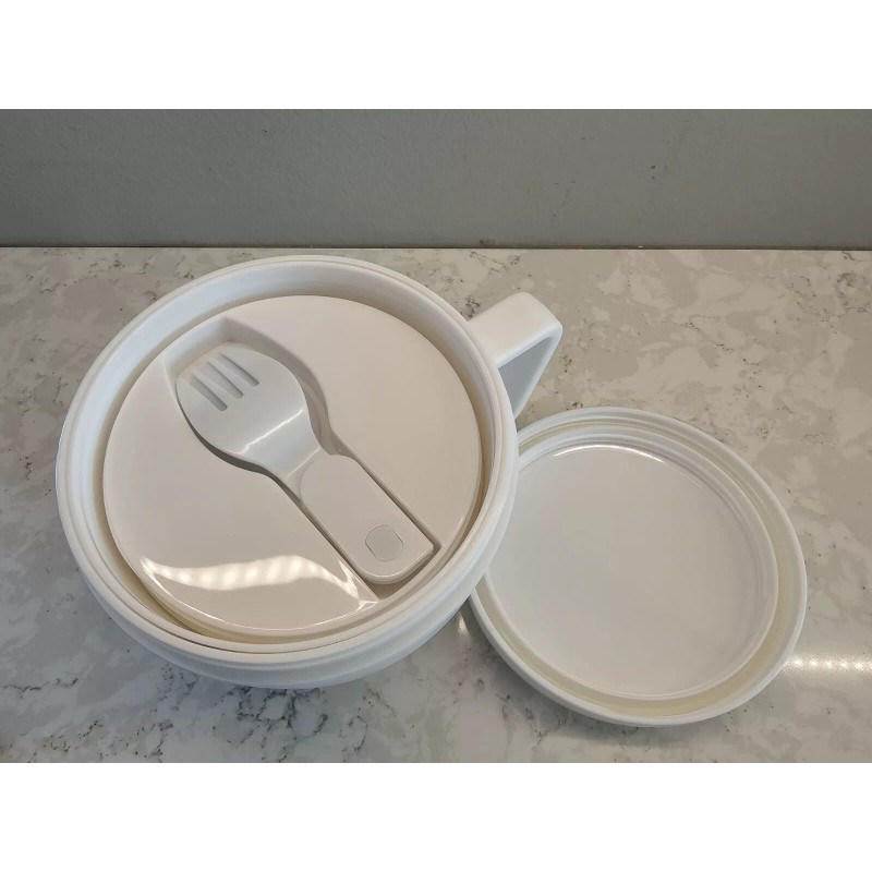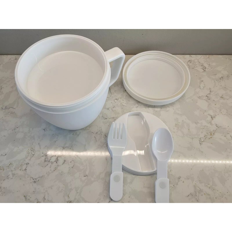 Unbranded *NEW* 14 Oz. Self-Contained 7-Piece Thermal Mug With Spoon And Fork Set, White