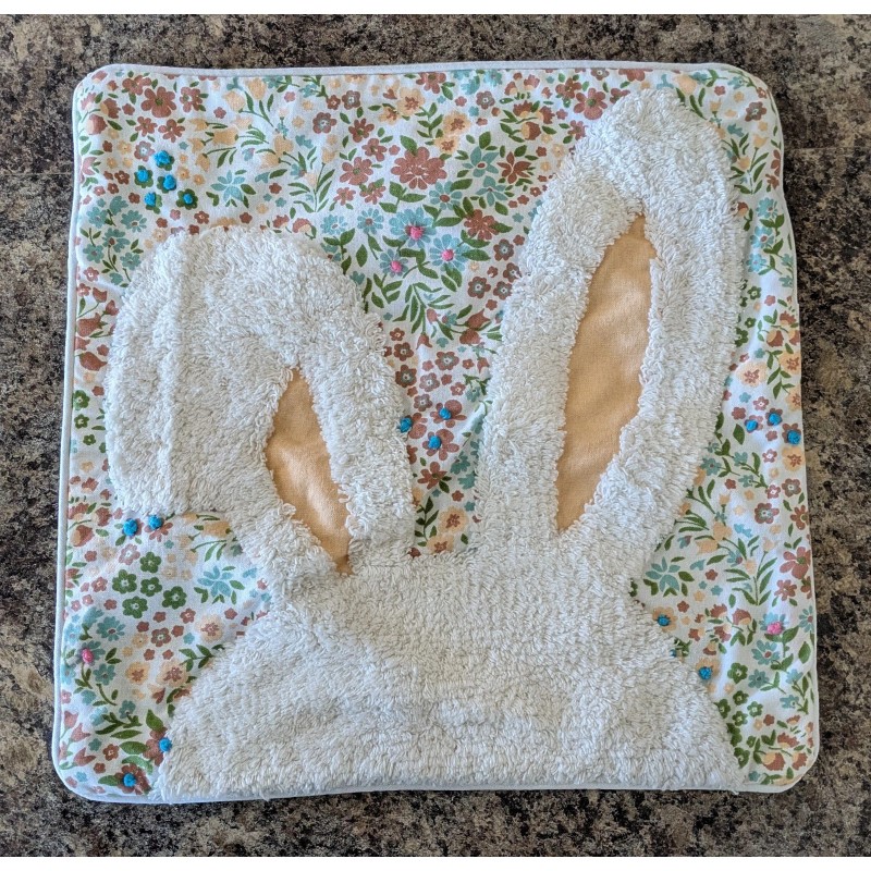 Super soft and fluffy Easter Bunny ears pillow cover. Fits 18" square pillows. Zipper closure.
