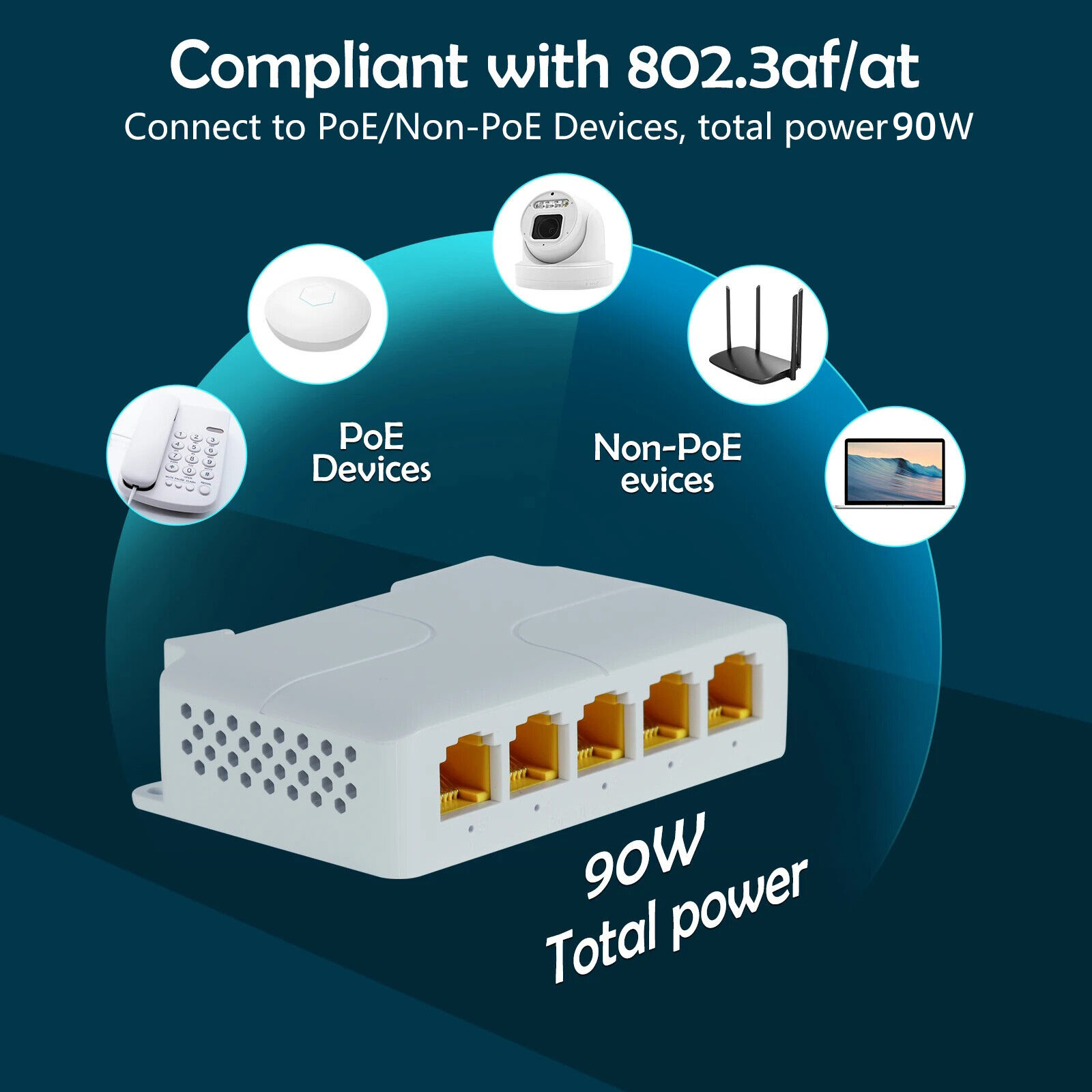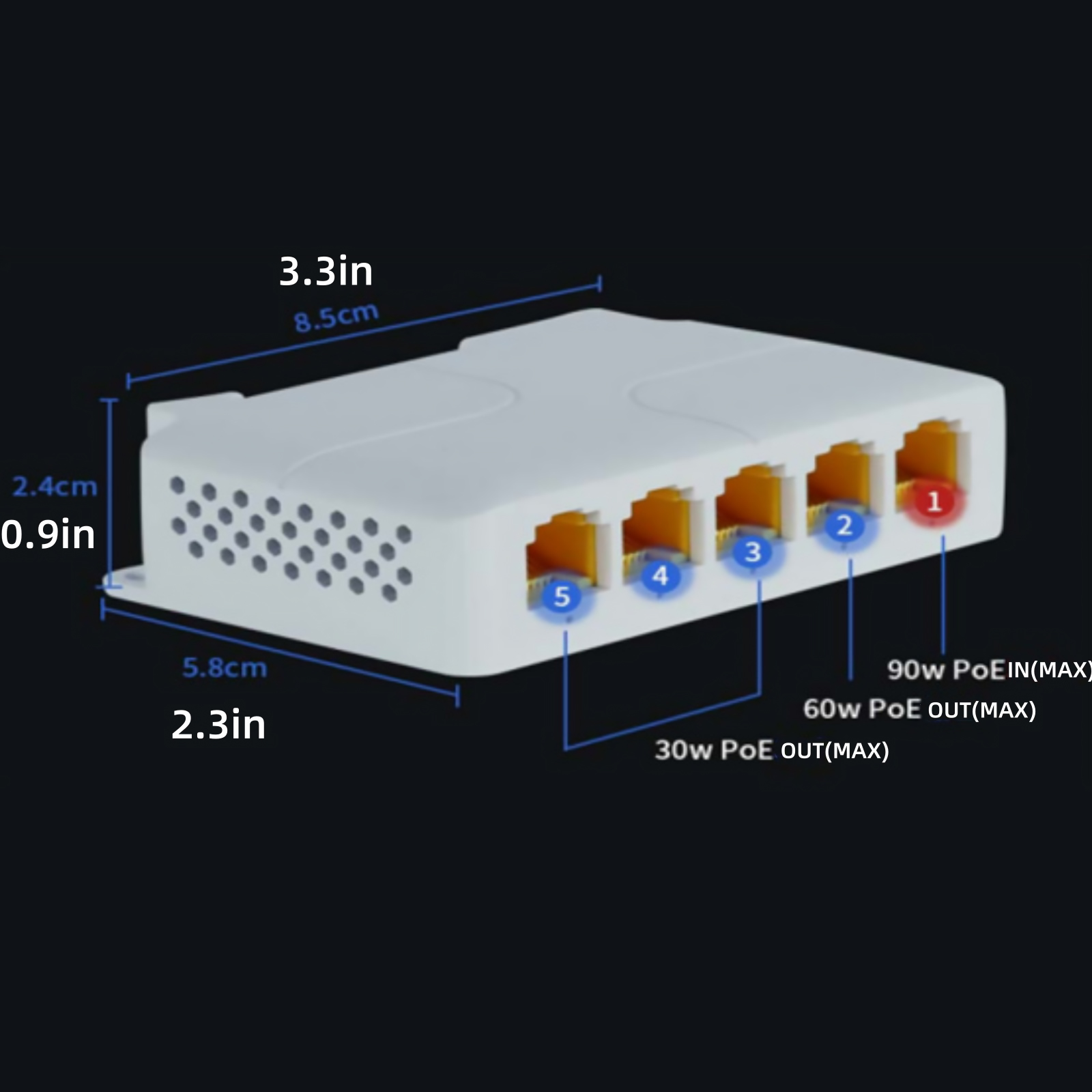 POE Port Output Power: Port 2 Output Maximum 60w, Port 3-5 Maximum 30w