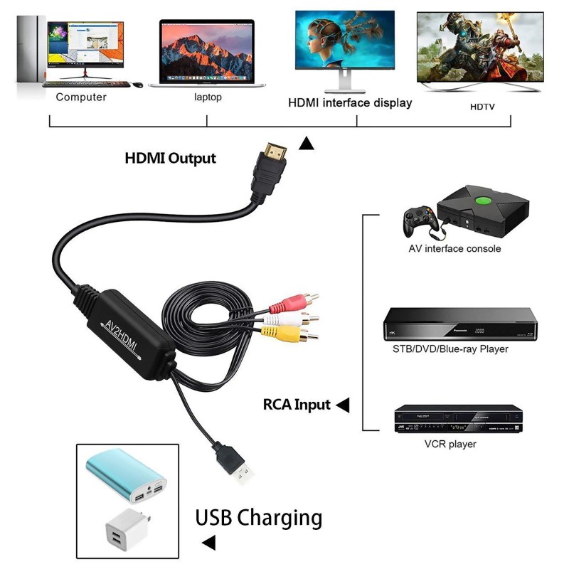 Composite Audio Video CVBS To HDMI Converter 3 RCA To HDMI Converter AV To HDMI Converter Cable Support 1080P
