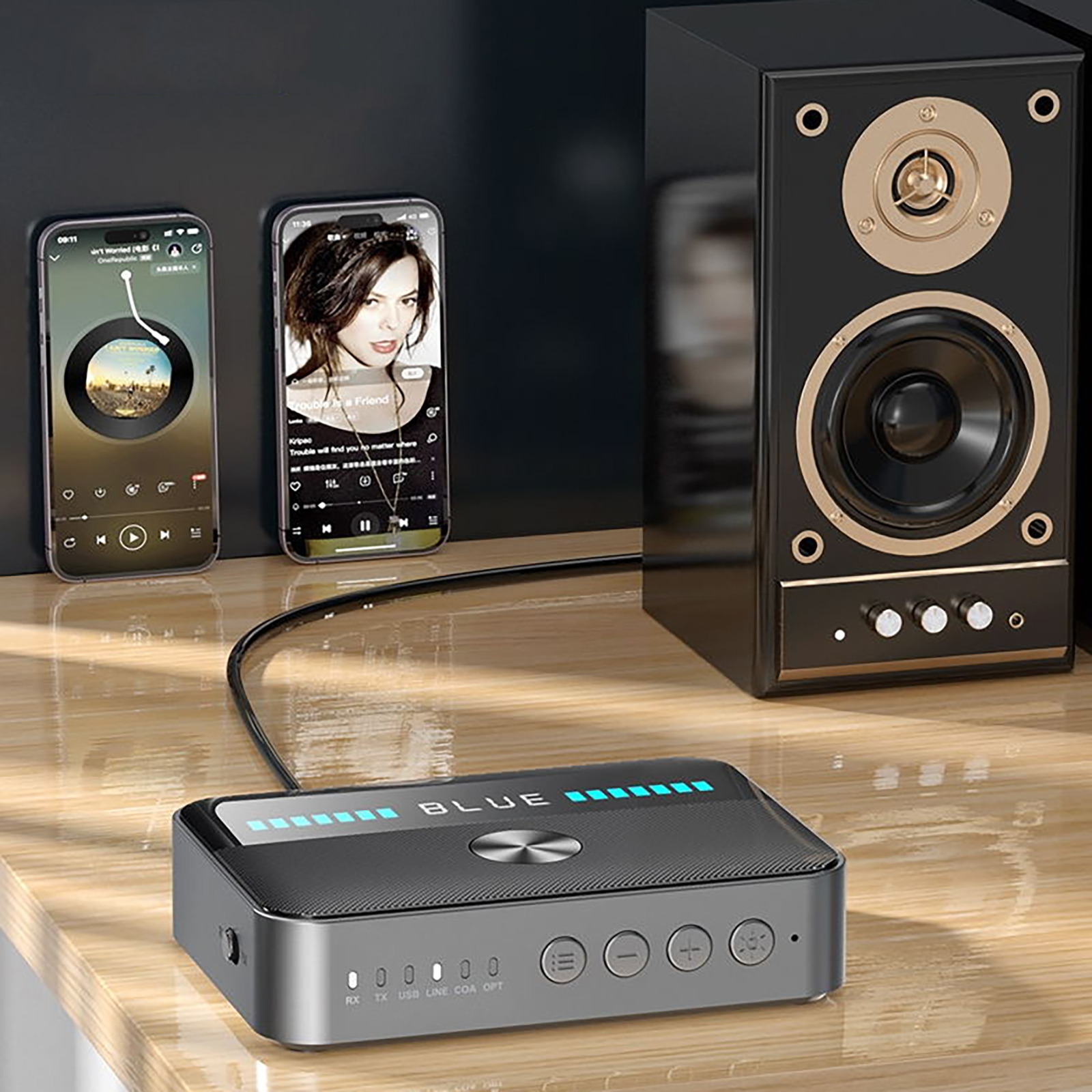 Bluetooth receiving (RX) and Bluetooth transmitting (TX) two-in-one design.