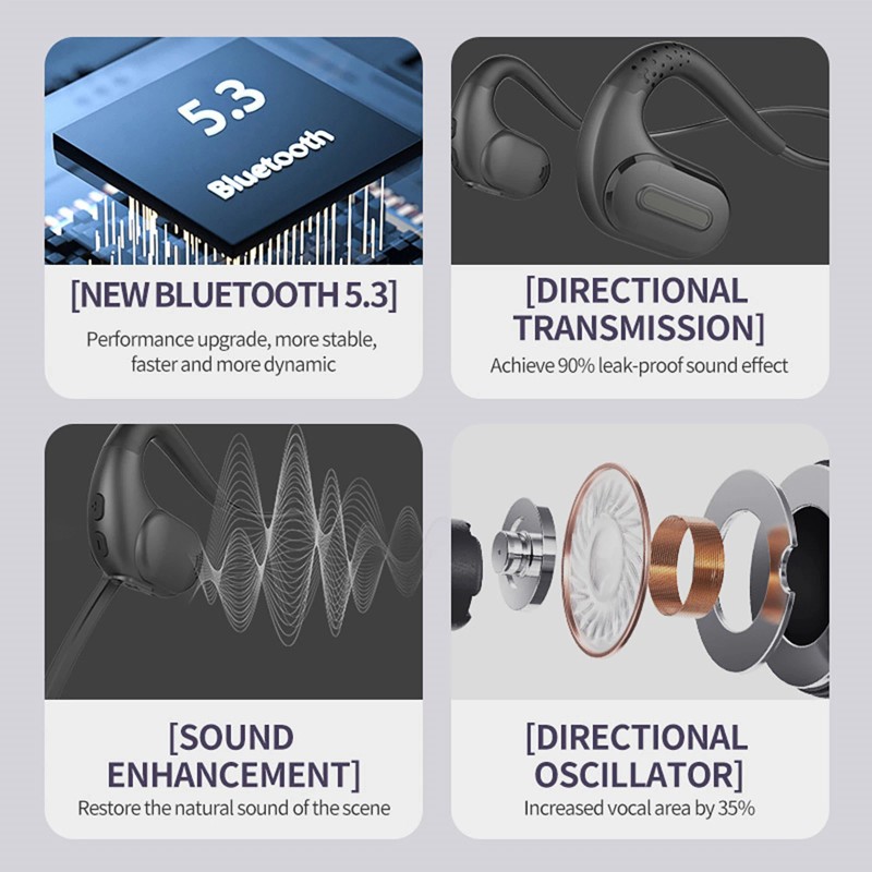1. [Air Conductive Headphones] Hanging Ear Air Conductive Headphones Free your ears, compared with traditional in-ear headphones, this model has an open-ear design, no need to plug the headphones into your ears. Open ear headphones wireless bluetooth not only keep your ear canal clean and won't damage your eardrums, but they also don't cover your ears so you can be aware of your surroundings, avoid potential dangers and stay safe!
