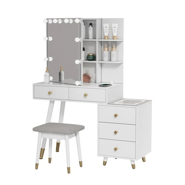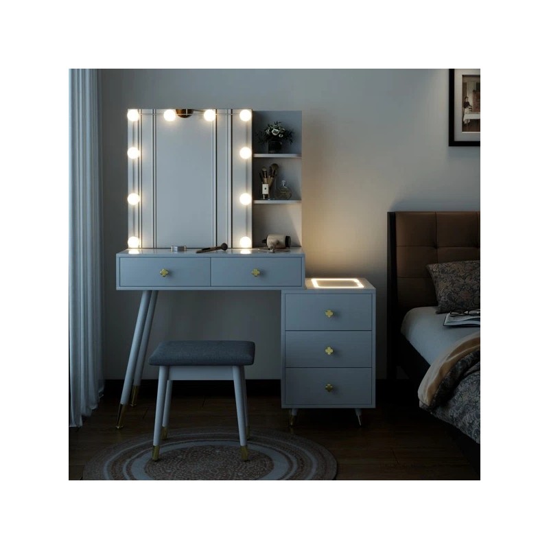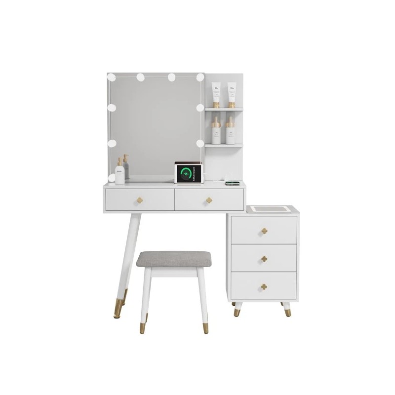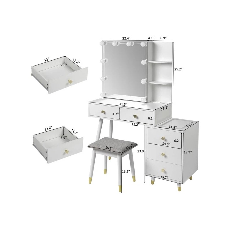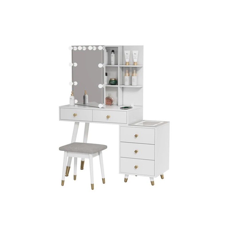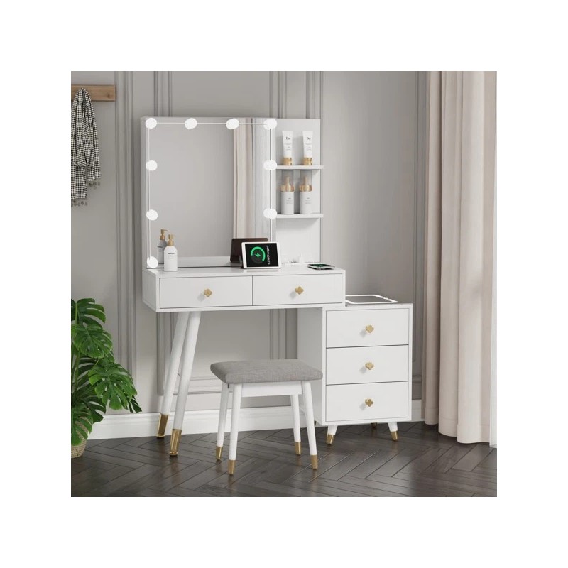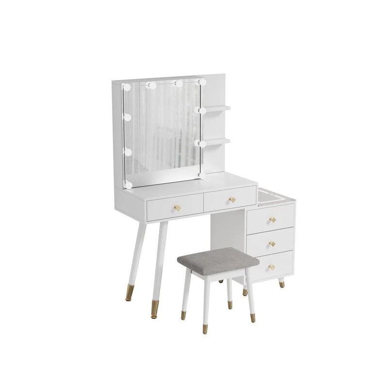 Unbranded NEW Dressing Table Set 5 Drawers 2-Layer Shelf Mirror Cabinet Led Light White