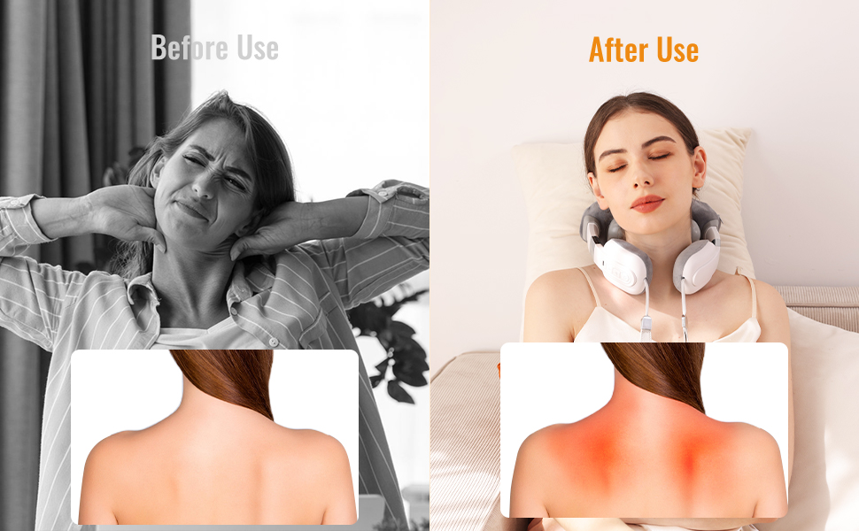 3. Heating Feature: This neck shoulder massager features heating function, making it more comfortable to use, with overheating guard, ensuring safety.