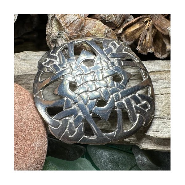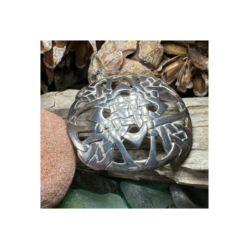 A unique Celtic weave design that will catch the eye on a sweater, jacket or coat. Polished lead free pewter.
