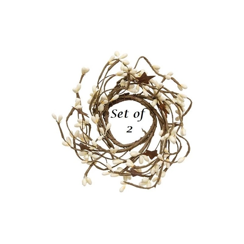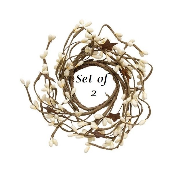 Unbranded NEW PRIMITIVE Farmhouse Berry Wreath Candle Rings 2pc Rust Stars 2" IVORY Pips
