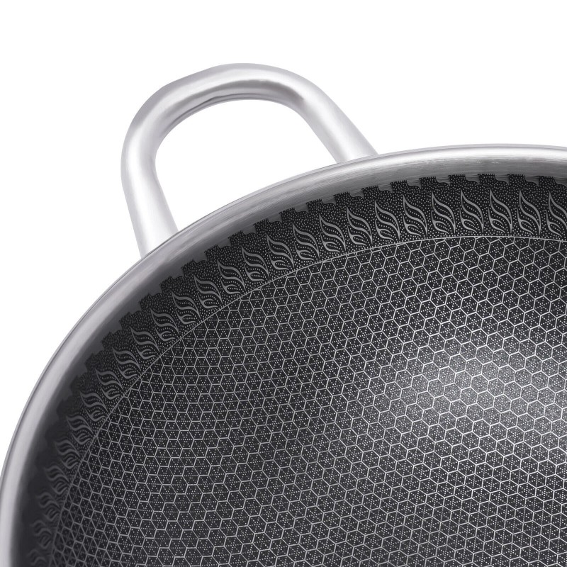 Non-stick & Scratch-resistant: The convex honeycomb coating protects the wok wall from being scratched by hard objects, and the non-stick surface makes cooking and cleaning easier.