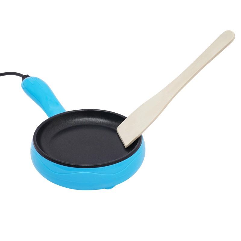 Unbranded Non-Stick Round Mini Frying Pan Electric Skillet Blue 450W W/ Wooden Spatula NEW