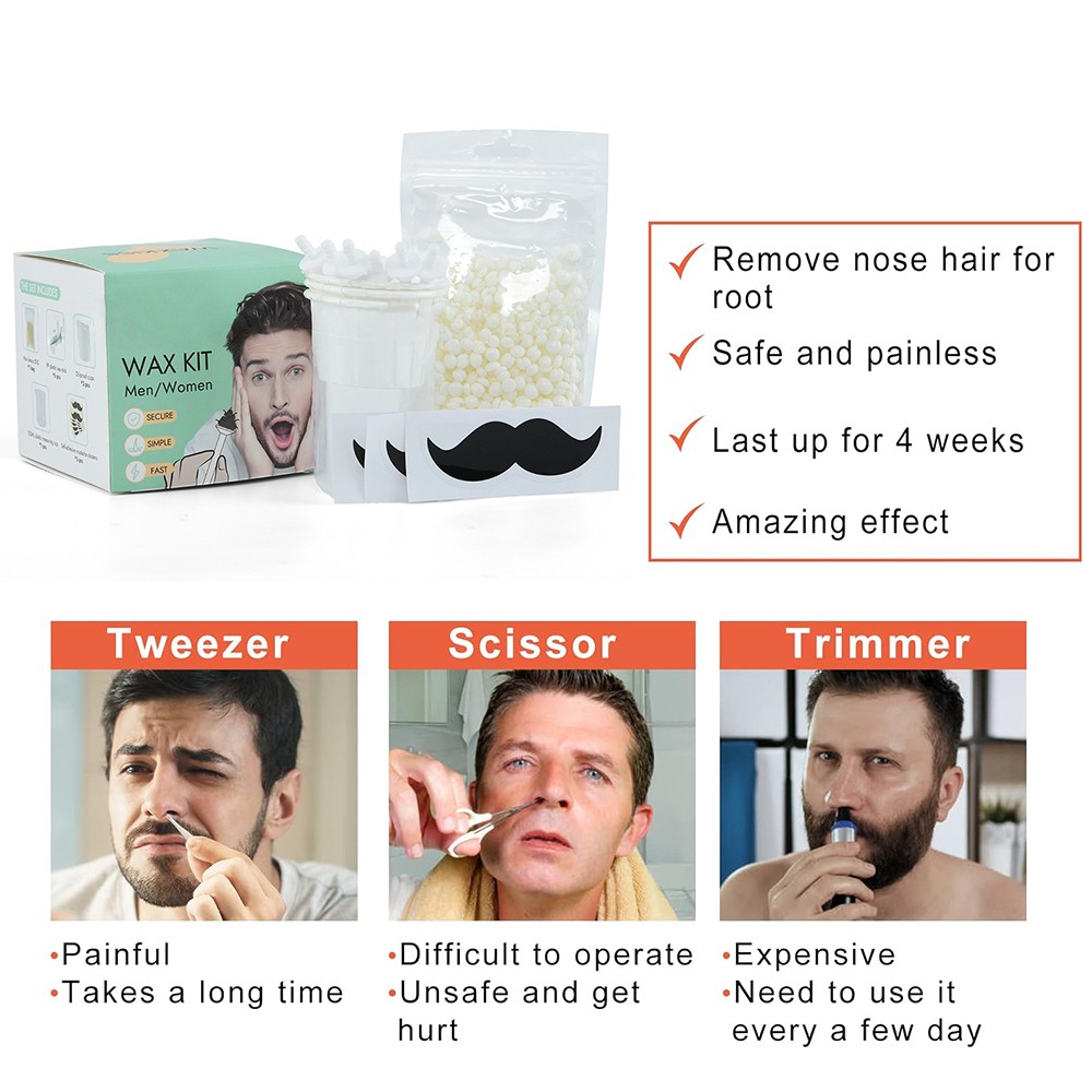 Low sensitivity hard wax formula: 50g specialized wax beads, suitable for all skin types, gentle and non irritating, hair removal while protecting nasal/ear canal skin.