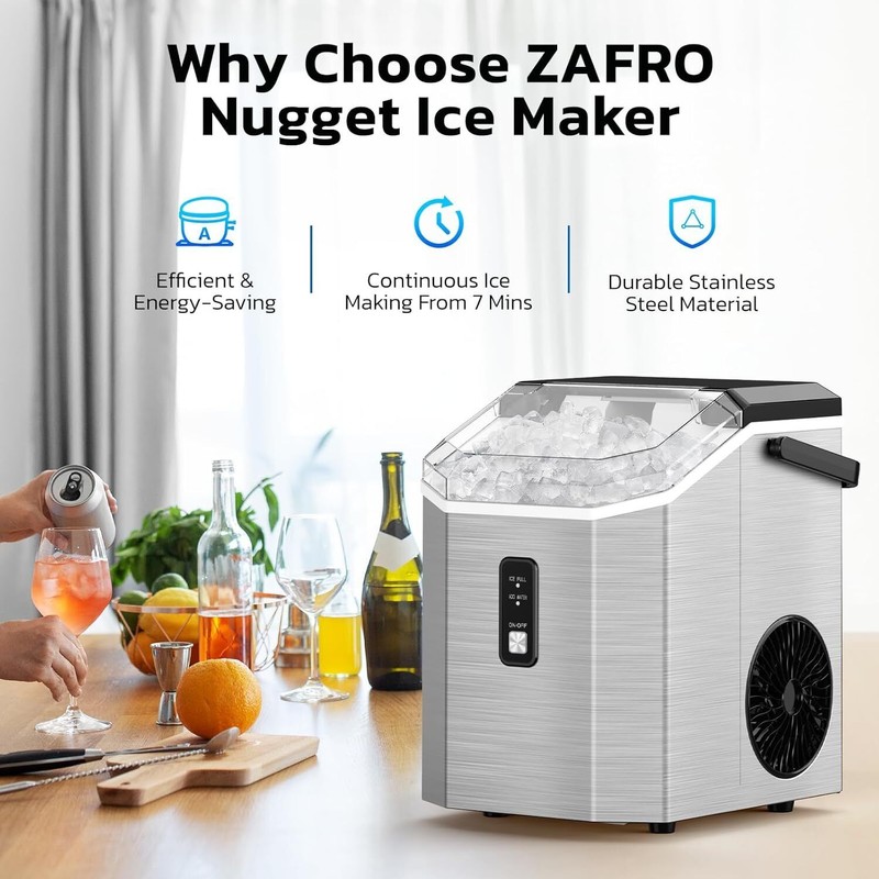- [Stainless Steel Ice Maker] Nugget ice maker is made of durable and beautiful stainless steel material, which extends its service life.