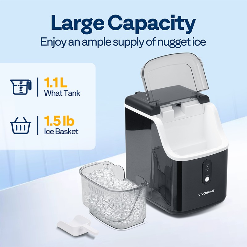 ENJOY CHEWABLE NUGGET ICE: The nugget ice maker is designed to produce soft and chewy sonic ice; Unlike regular ice cubes, nugget ice is soft, crunchy, and thus gentle on your teeth; The petite size of the nugget ice makes it easy to fit in containers of various sizes and shapes, quickly cooling your beverages; The nugget ice works wonders in preserving the rich flavors of your whiskey or drinks, enhancing their overall taste experience