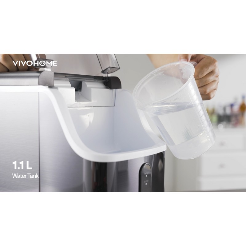 USER FRIENDLY DESIGNS: One-button design simplifies the process of using, filling, and cleaning; It comes with a spacious ice basket and a convenient ice scoop for simple operation; The transparent lid allows you to monitor the ice making process, while the ice-full indicator and add-water indicator provide helpful assistance in managing the ice-making tasks