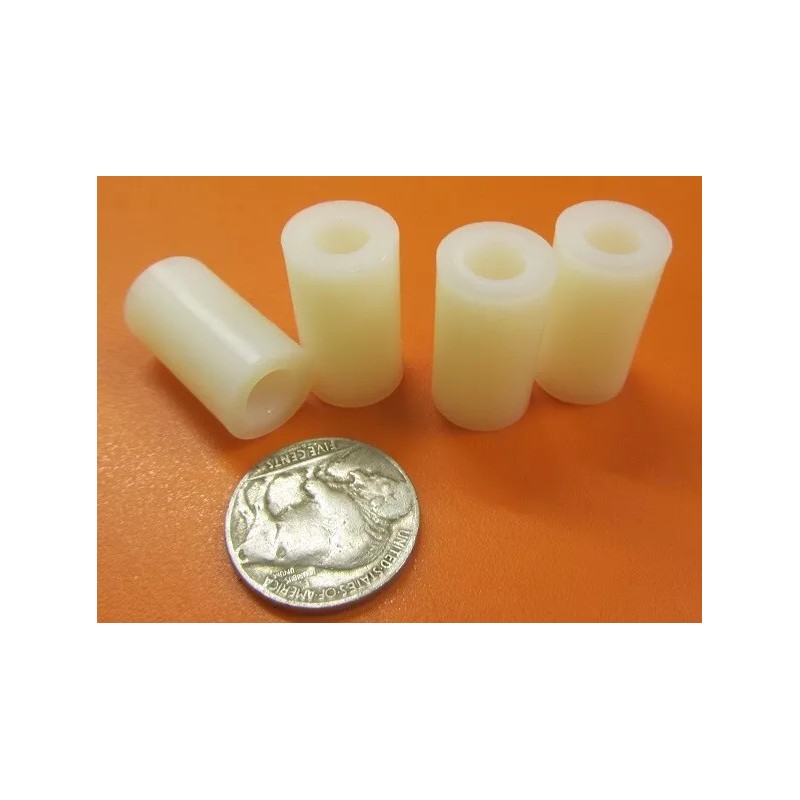 Unbranded Nylon 66 Spacer, Natural, NO.1/4" Screw, 1/2" OD x .252" ID x 1 3/16" Lg., 5 pc