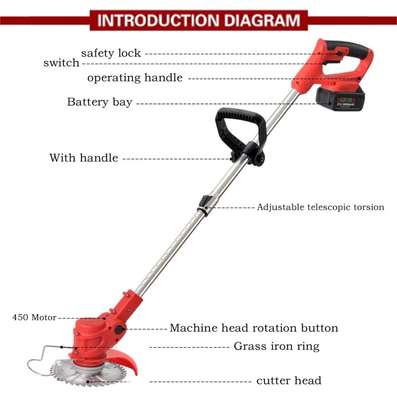 Unbranded O-Shaped Roller Mower – Red Electric, 2 Batteries, 1500mAh, Pruning Tool