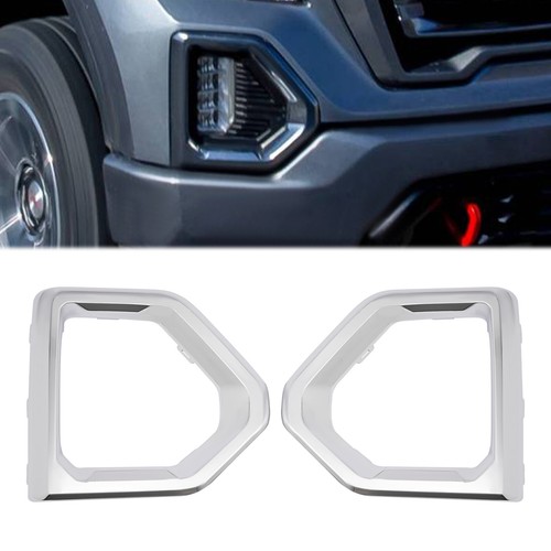 Front Fog Light Outer Bezel Cover Chrome Set, Fits For GMC Sierra 2019-2021 Denali SLT, Driver & Passenger Side Replacement