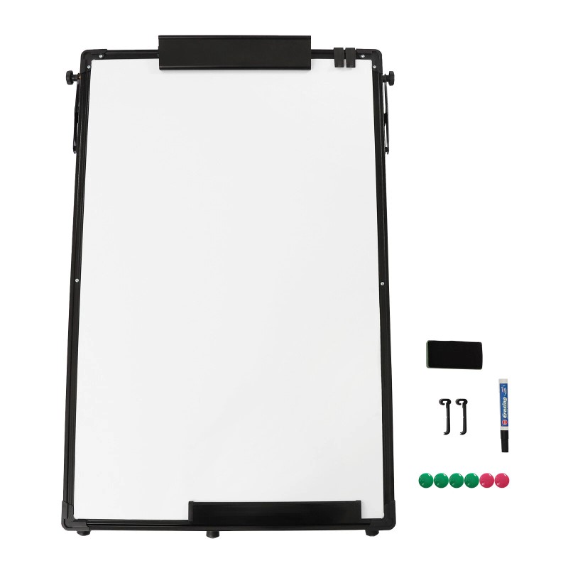 Application It Is an Ideal Tool for Companies, Offices, Schools, Etc. to Post Messages, Notices, Plans, Presentations, Training, and Announcements. It Not Only Provides a Flat and Smooth Writing Surface but Also Can Be Used As a Magnetic Bulletin Board.   Specification Material: Metal Baking Paint White Board, 7 Layers of Corrugated Paper, Galvanized Backplane,  Steel Pipe Spraying Bracket, Electrophoresis Aluminum Frame, Inserted Abs Curved Corner Adjustable Height: 0.97-1.58m/38.19-62.2in White Board Size: 61*91.4cm/24*36in Tripod Bracket Length: 79.5cm/31.3in Backboard Bracket Length: 61.3cm/24in Gross Weight: 4.8kg/ 10.58 Lbs Net Weight: 4.5kg/ 9.92 Lbs Package Size: 98*7*68cm/38.58*2.76*26.77 in   Package Included 1 *Whiteboard Easel 6 *Magnets 1 *Eraser 1 *Whiteboard Pen 2 *Clips