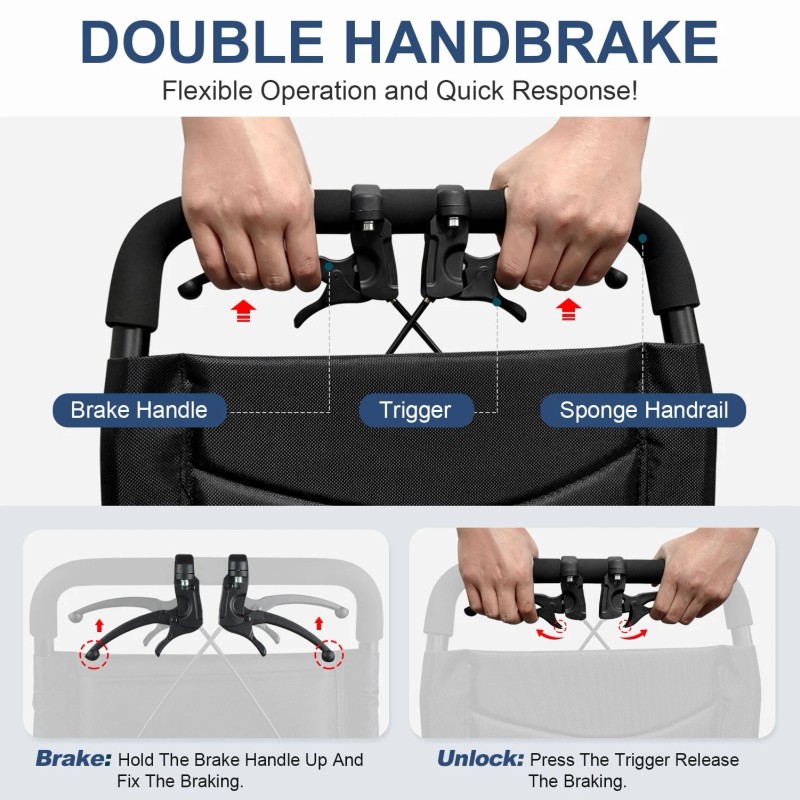 - This design adopts parking brake and silent hand brake, safe and reliable. Double bearing decompression design, effective resistance to road bumps, you can smoothly pass the bumpy road, driving more comfortable.