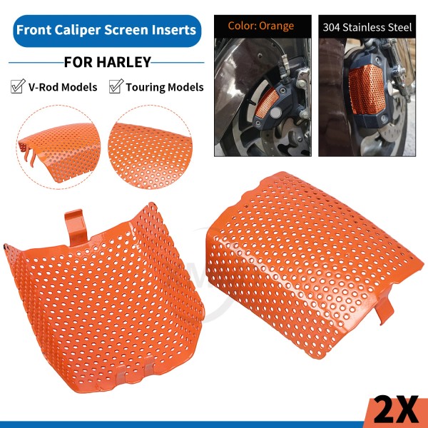 Unbranded Orange Front Caliper Screen Inserts For Harley Touring Electra Road Street Glide