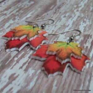 Unbranded orange yellow fall autumn maple leaf charm earrings