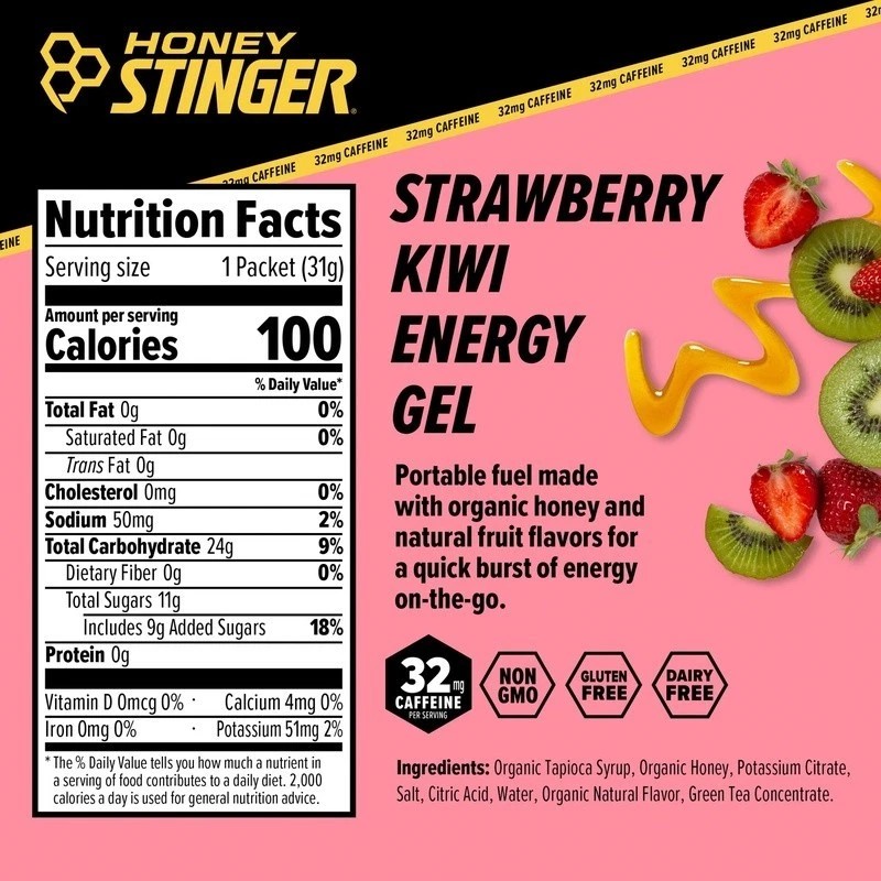 Our Strawberry Kiwi Caffeinated Energy Gels are a delicious way to fuel up for your next activity. More than 2,000 pro and college teams use products to help them achieve their goals. It’s the fuel teams trust. Packaging may vary.