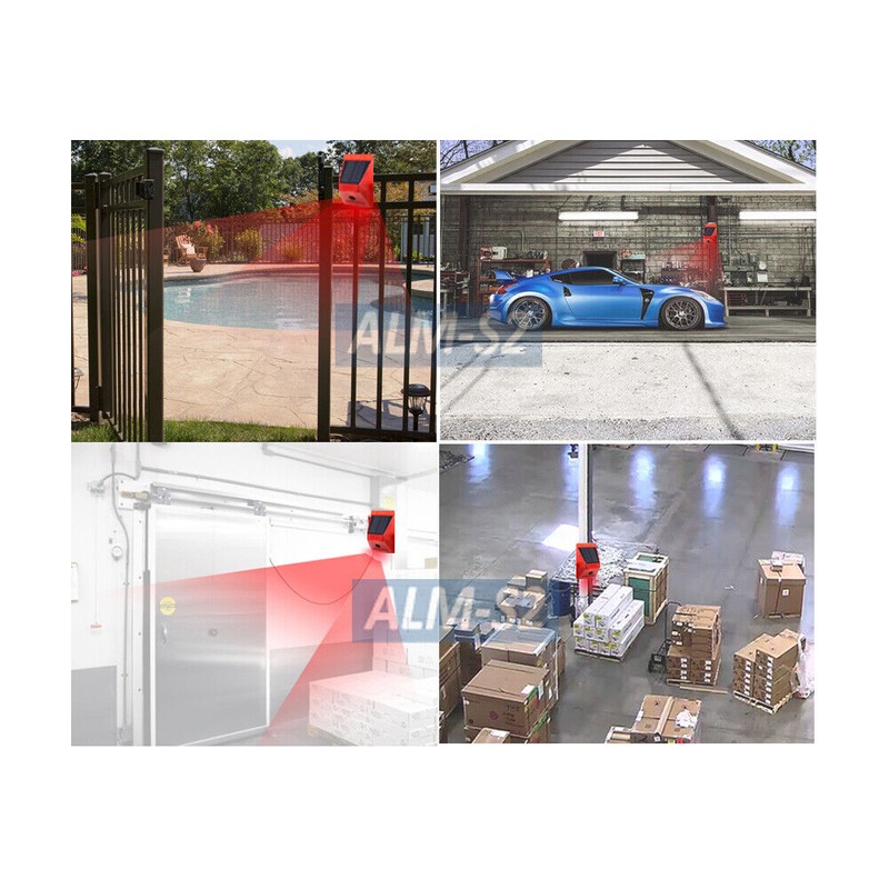 - Energy-saving solar-powered motion sensor alarm designed to protect your home, warehouse, garage or backyard with audible alerts and flashing strobe light.