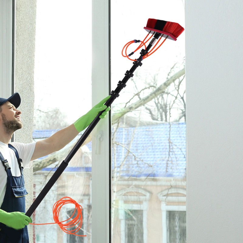 This Water Fed Brush Is Equipped with a Telescopic Pole and a 26.9ft Long Water Hose, Offering Great Convenience in Cleaning Space. the Pp Bristles Provide Good Cleaning Power Without Scratching the Cleaning Surface, Making It Ideal for Cleaning Photovoltaic Panels, Cars and Windows. the Hose Can Also Be Installed in the Telescopic Pole, Making It More Aesthetically Pleasing and Convenient.