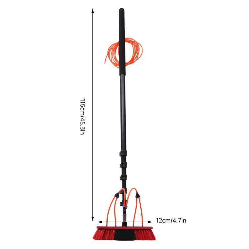 Quality Materials: the Sturdy Aluminum Alloy Pole Can Support up to 145lbs and Will Not Bend Even at Maximum Length. It Also Has Good Anti-rust Ability for Long-term Water Washing Environment. the Pp Bristles Effectively Remove Dirt from the Gap and Surfaces Without Leaving Scratches on the Surface.