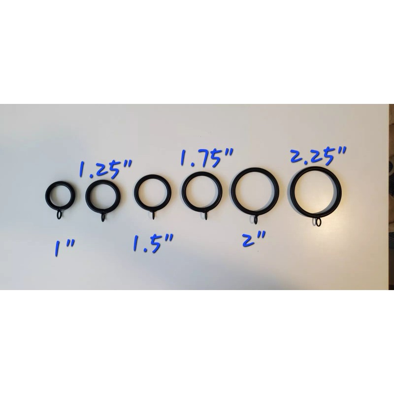 - Black 2-1/4" iron Drapery Rings with eyelet