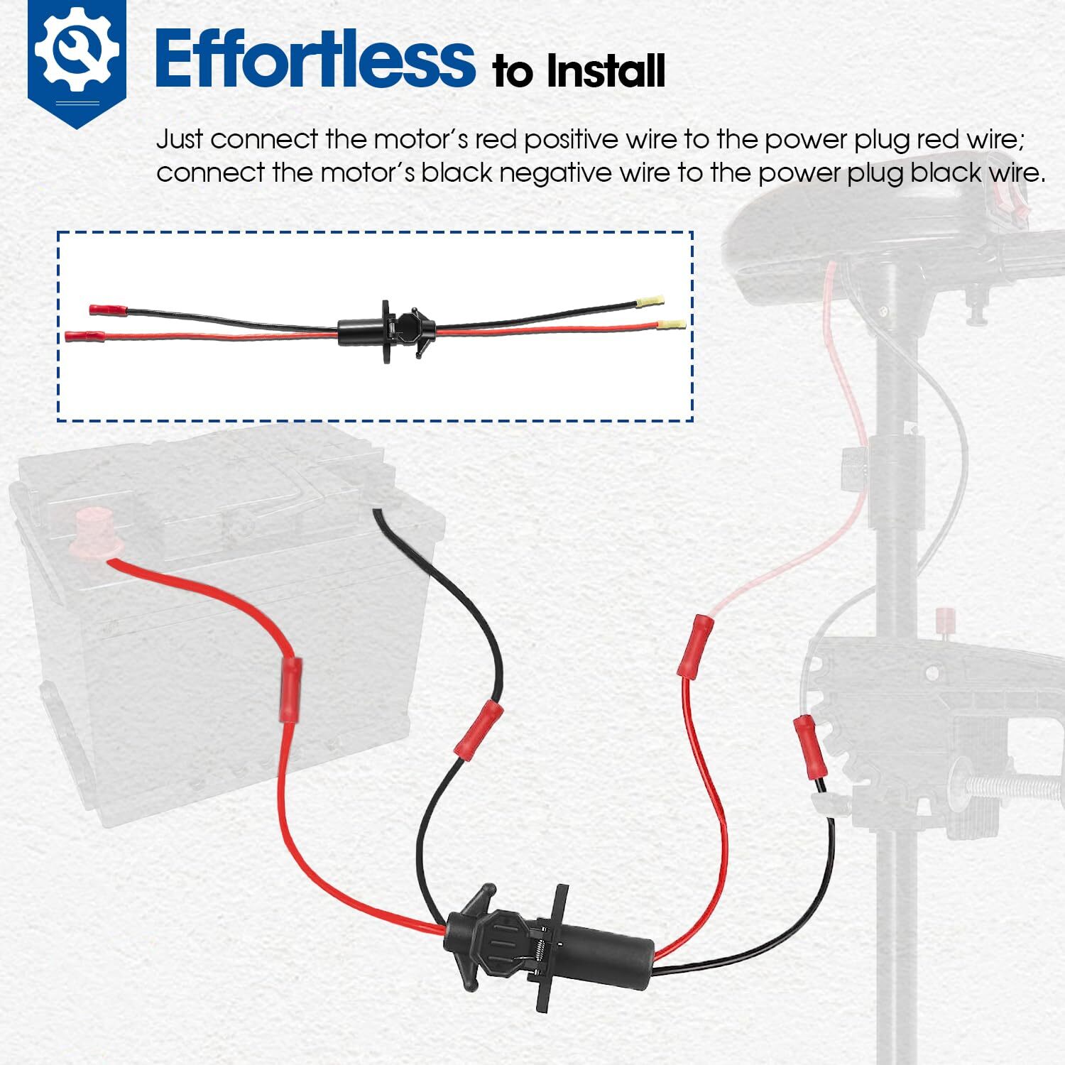 【Solid & Safe Connection】: Used under harsh marine environments, the 14365-6 trolling motor plug &14366-6 female receptacle offers quick, convenient connections between an electric trolling motor and a power source. Just connect the motor's red positive wire to the power plug red wire; connect the motor's black negative wire to the power plug black wire.