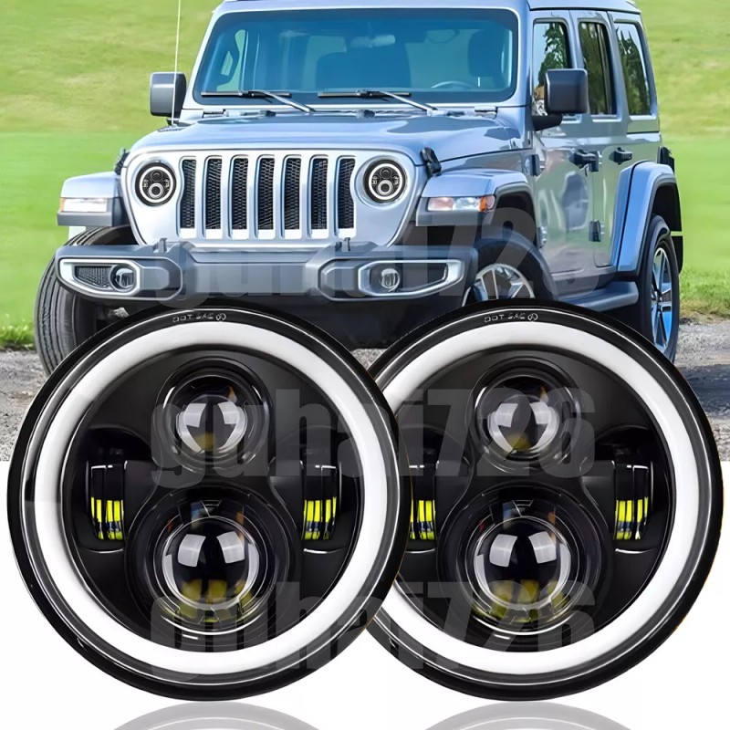 Unbranded Pair 130W Black 7" Round Led Headlights for Jeep Wrangler 1997-2018 TJ LJ JK