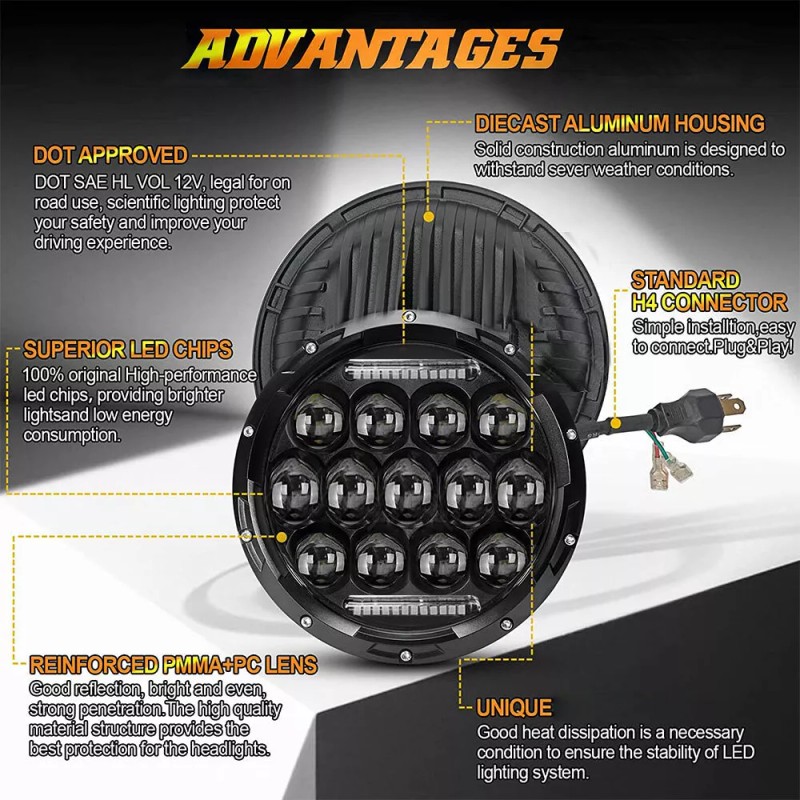 Fit for Hummer H1&H2 (2003~2009) (H2 needs 9007 male to H4 female adapter,not included in the package)