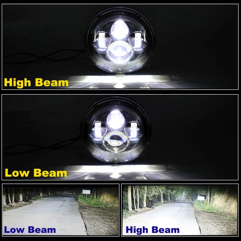 -Super Bright ; DOT, SAE legal light,legal on the road.With high grade LED chip, much brighter and durable than Halogen or HID Headlight.14000lms on high beam and 10000lms on low beam,6000K pure white light,over 80000 hours above life time.