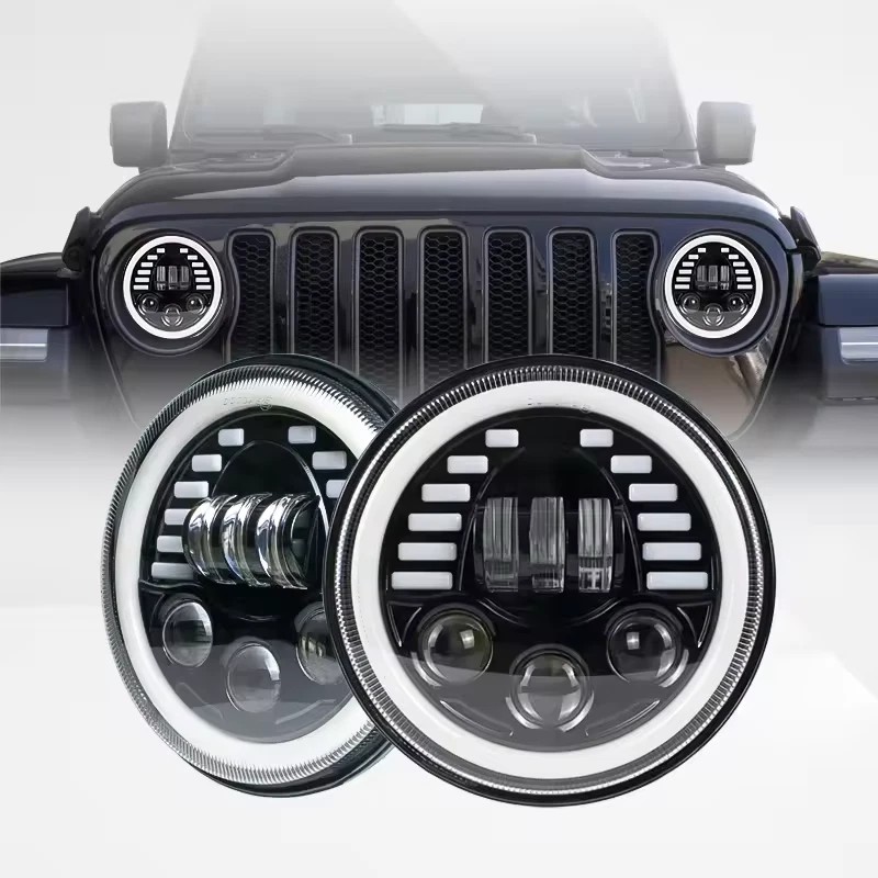 Unbranded Pair 7" Round LED Headlights Hi/Lo Beam H4 Bulbs For Jeep Wrangler JK TJ CJ LJ