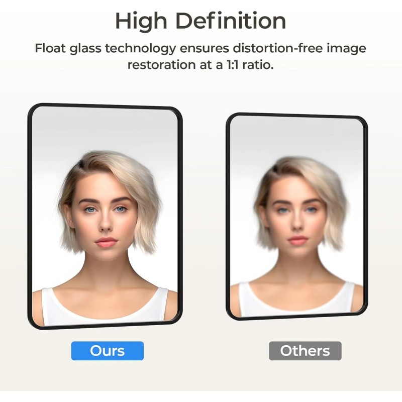 High-definition float glass delivers true reflection and added safety with shatter-resistant film.