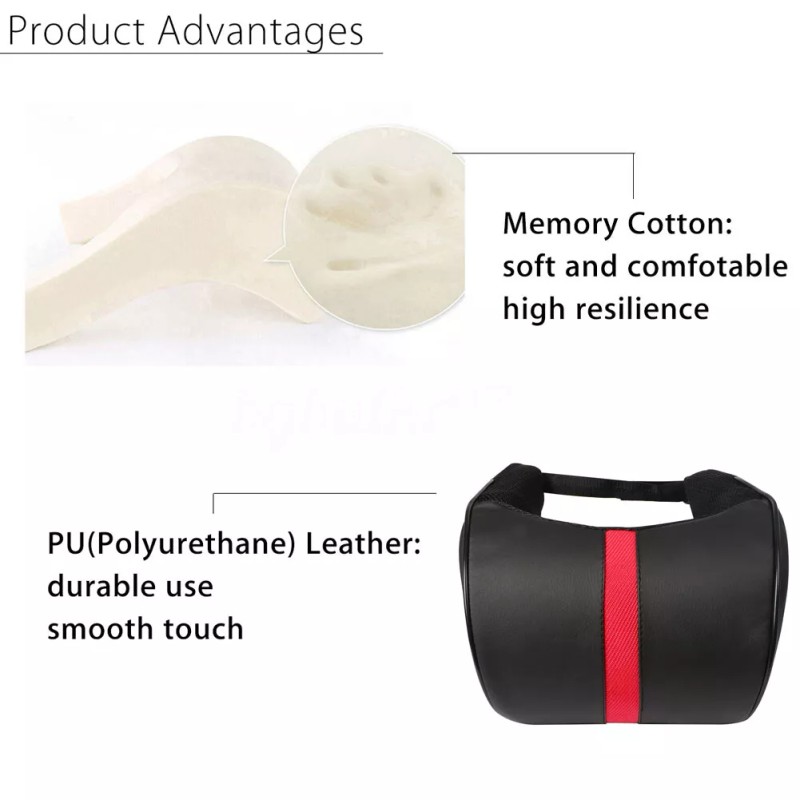 Adjustable Car Soft Leather Black+Red Strip Memory Cotton Pillow Car Seat Neck Headrest
