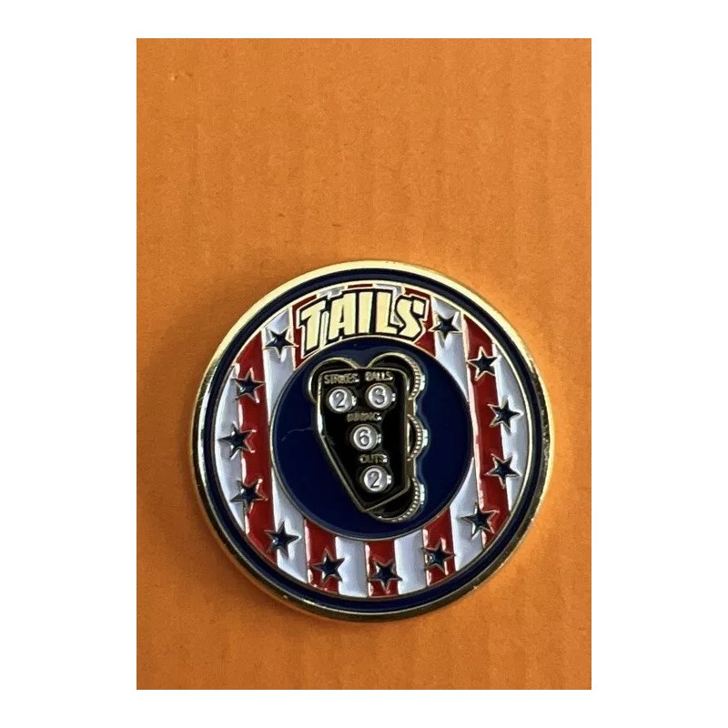 Up for sale is a Patriotic Umpire Flip Coin. This coin is to determine which team is home or away. On the coin it has “Heads” on one side and “Tails” on the other. These are very helpful for a tournament, such as umpires, coaches, or tournament directors. This is a metal coin that measures 1 1/2 inches round. Shipped with USPS First Class Package. Thanks for looking!
