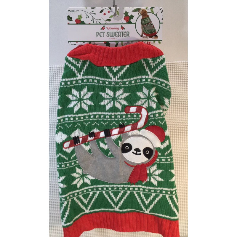 Unbranded Pet Dog Puppy Holiday Christmas Sweater Red Green Size Medium Sloth On Candycane