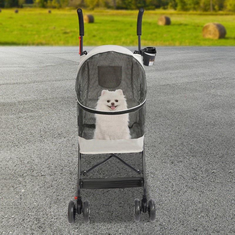 Unbranded Pet Dog Stroller Travel Carriage 4 Wheels With Cup Holder & Rear Pocket, Gray