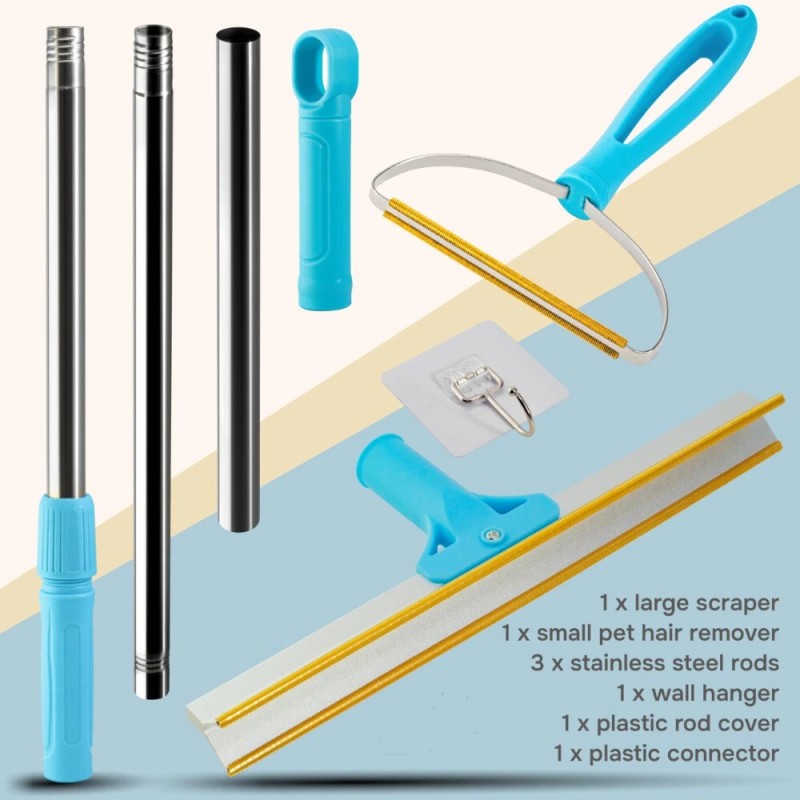 Unbranded Pet Hair Removal Rake Set 55"Telescopic Handle Broom for Dog Cat Carpet Cleaner