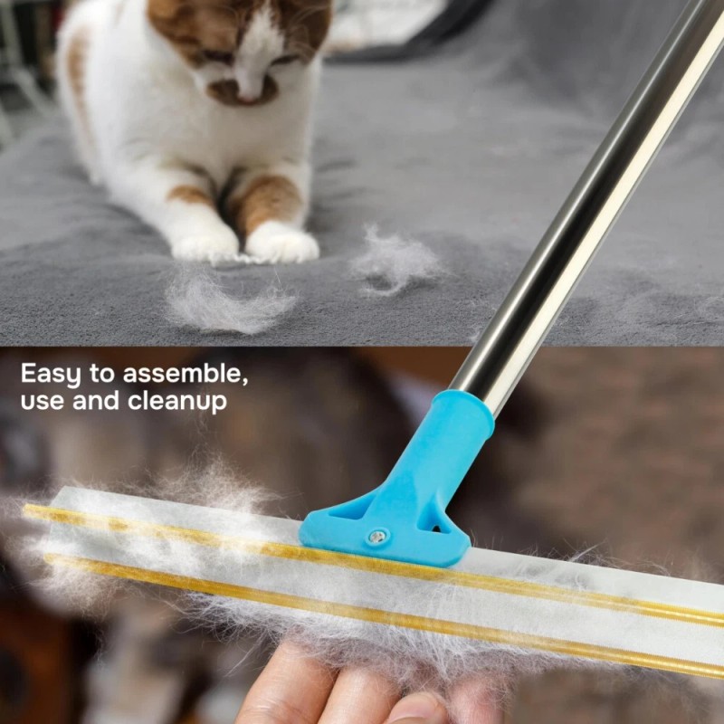 - Easy to Use with Rotating Head: This dog hair rake for carpet is durable, long-lasting and reusable, an excellent alternative to electric and hard to use hair removal devices! The long handle and 180-degree rotating Y-shaped brass head allow you to remove pet, cat, or dog hair from any corner or space with little effort!