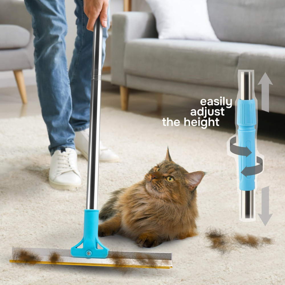 - 55-Inch Adjustable Length Handle: Our dog hair rake for carpet has a long 55-inch handle comprised of 3 parts that you can adjust and reach the desired length! Whether you want to clean narrow or low surfaces or don’t want to bend your back, this carpet hair rake is what you need!