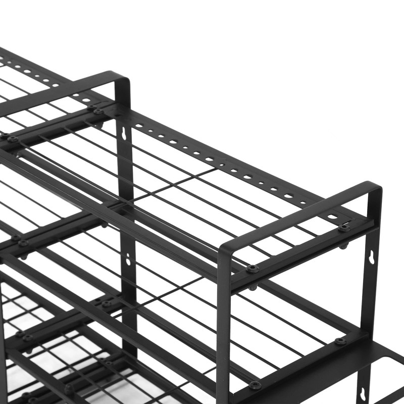 1. OVERSIZED 7 DRILL STANDS AND 4 LAYER HIGH CAPACITY: This wall mounted power tool organizer features the latest 4 layer high capacity design. The bottom layer can store 7 cordless electric drills, the upper three layers can store other heavy tools or a variety of small tools, and the side also add a hammer rack, pliers rack and screw tool holder
