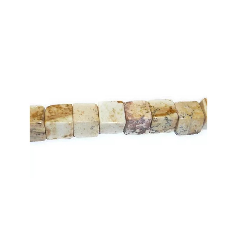 Unbranded Picture Jasper Big Hole Cube Beads 6mm, 2mm hole, 8-inch strand