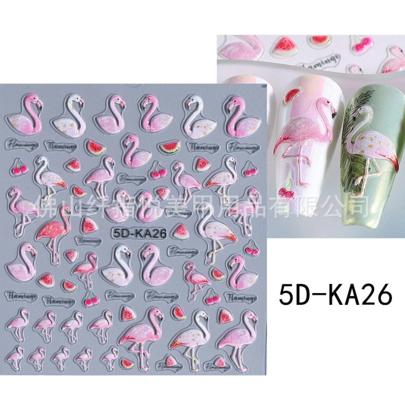 Unbranded Pink Cartoon Flamingo Swan Nail Stickers Decals Transfers Self-Adhesive NH30