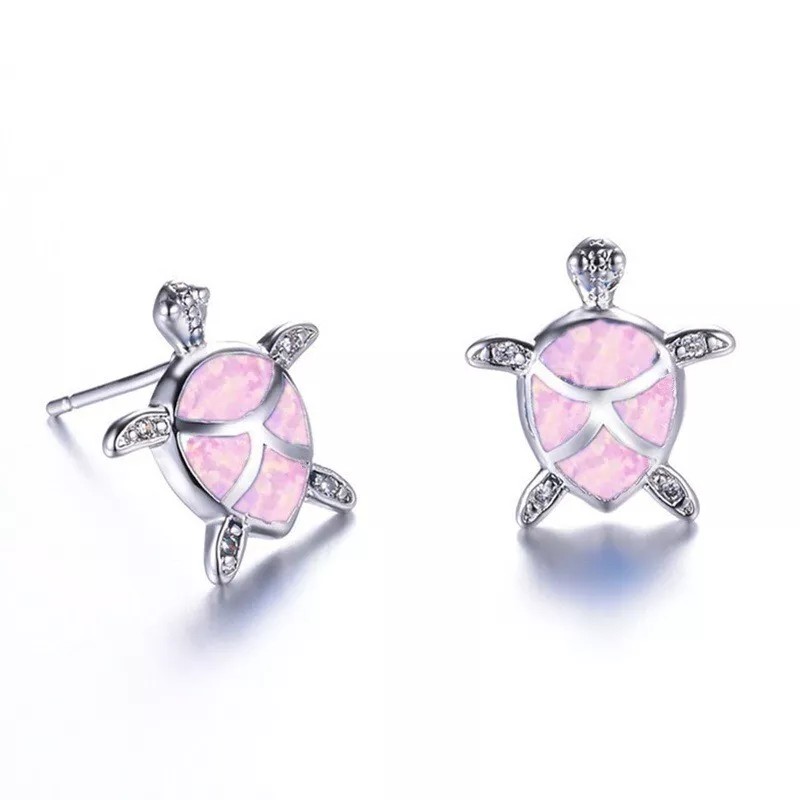 Unbranded Pink & Silver Turtle Necklace and Earring Stud Set