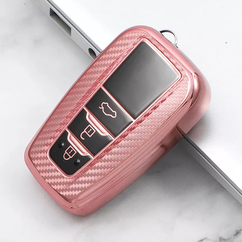 Unbranded Pink TPU Carbon Fiber 3 Button Car Smart Key Case Cover For Toyota Camry Corolla