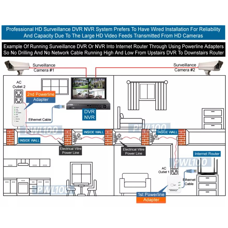 This Powerline Ethernet adapter kit provides a convenient solution for turning your home's 110V or 220V electrical wiring into a fast wired network through your walls and floors.