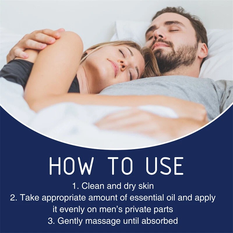 How to use: Clean the penis and keep it clean and dry. Put 5-10 drops on your hand. Apply the oil gently and evenly, avoiding the glands and urethra, and massage from top to bottom until the oil is gone. If it's too greasy, dry it gently with a rag or paper towel. Continue for 2-10 minutes until the temperature rises slightly. Use it every day to improve performance and improve results.