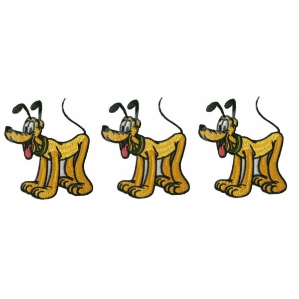 Unbranded Pluto the Dog Cartoon Character 3" Wide Embroidered Iron on Patch Set of 3